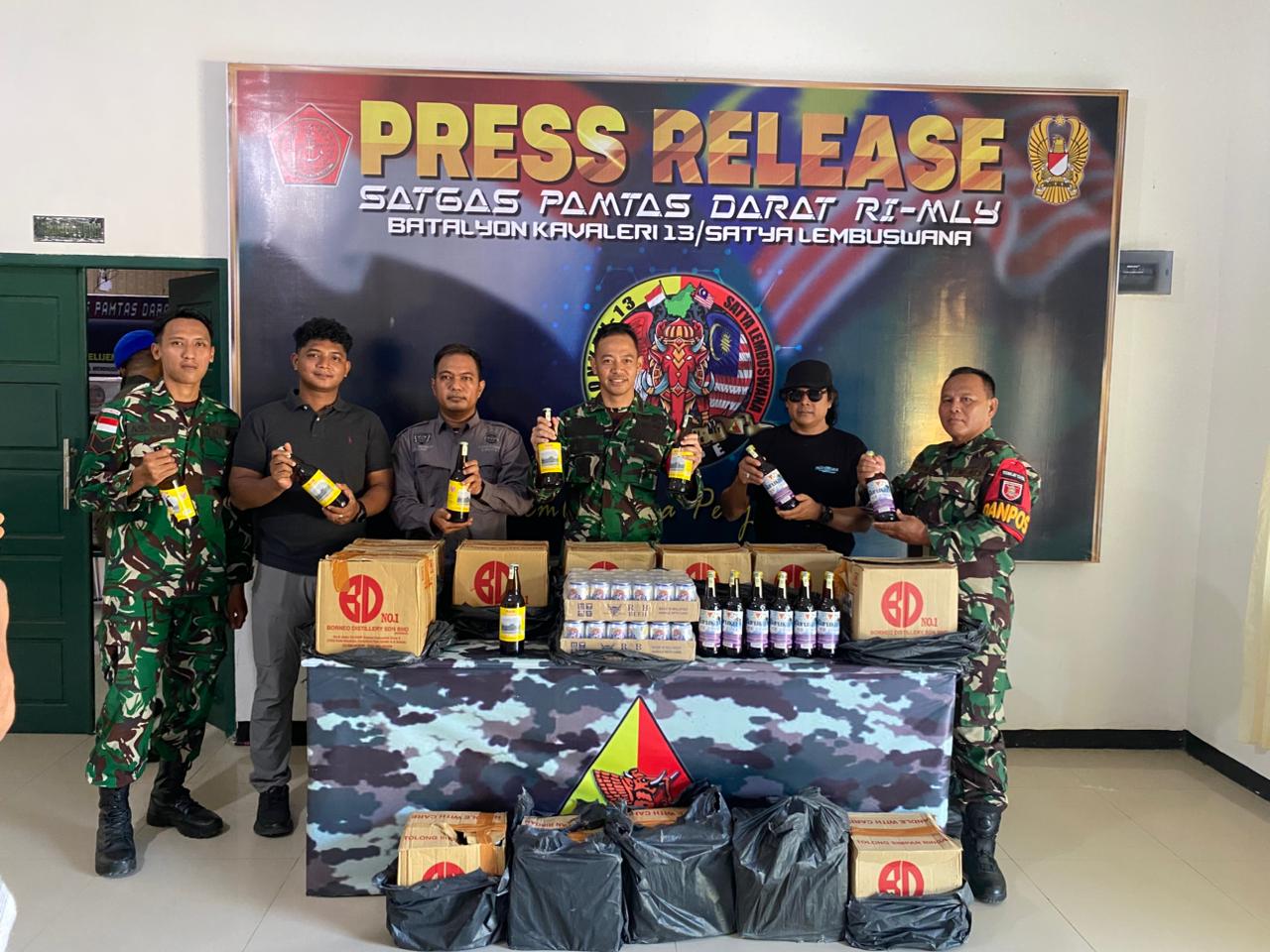 NUNUKAN – Satgas Pamtas RI–Malaysia Yonkav 13/SL kembali menggagalkan upaya penyelundupan minuman keras (miras) ilegal di wilayah perbatasan Indonesia–Malaysia, tepatnya di Kampung Keramat, Kecamatan Sebatik Barat, Kabupaten Nunukan, Kalimantan Utara.